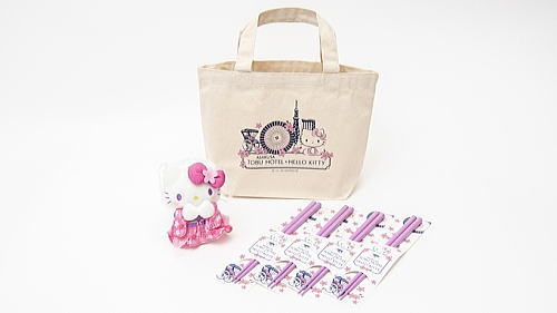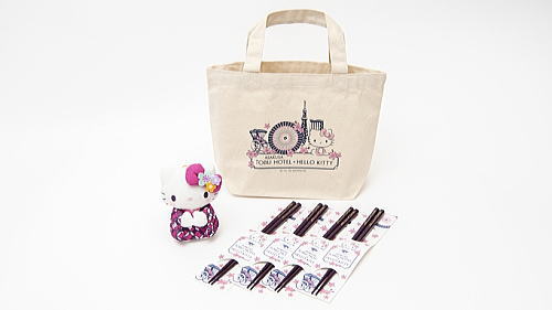 - 丈夫なキャンバス地で、客室のデザインと連動した「浅草×キティ」のロゴ入り。