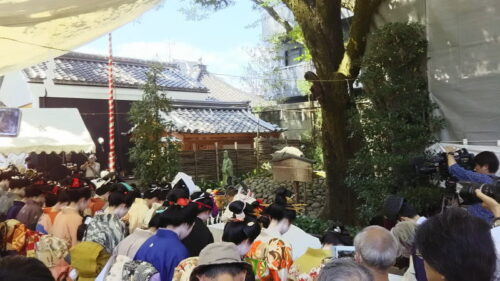 縁切り縁結びで有名な安井金比羅宮ですが、この日ばかりは艶やかなお祭りムードに包まれていました。