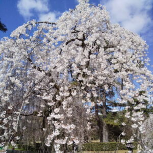 その参道横に優雅に枝垂れをたなびかせているのが「御所桜」。