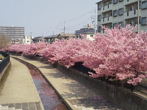 この河津桜が京都で一番早く楽しめるオススメの桜並木です。
