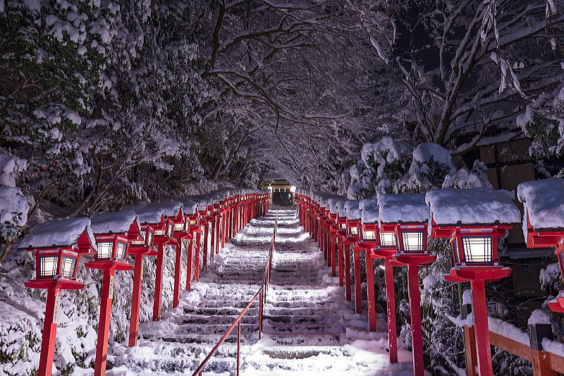 京都の貴船神社で、積雪日限定でライトアップが行われます。