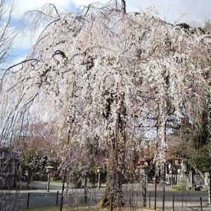 ✓春には枝垂れの「阿亀桜(おかめさくら)」
